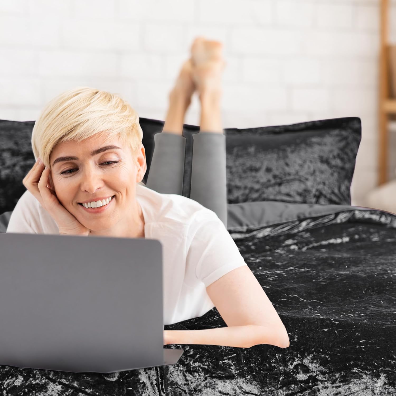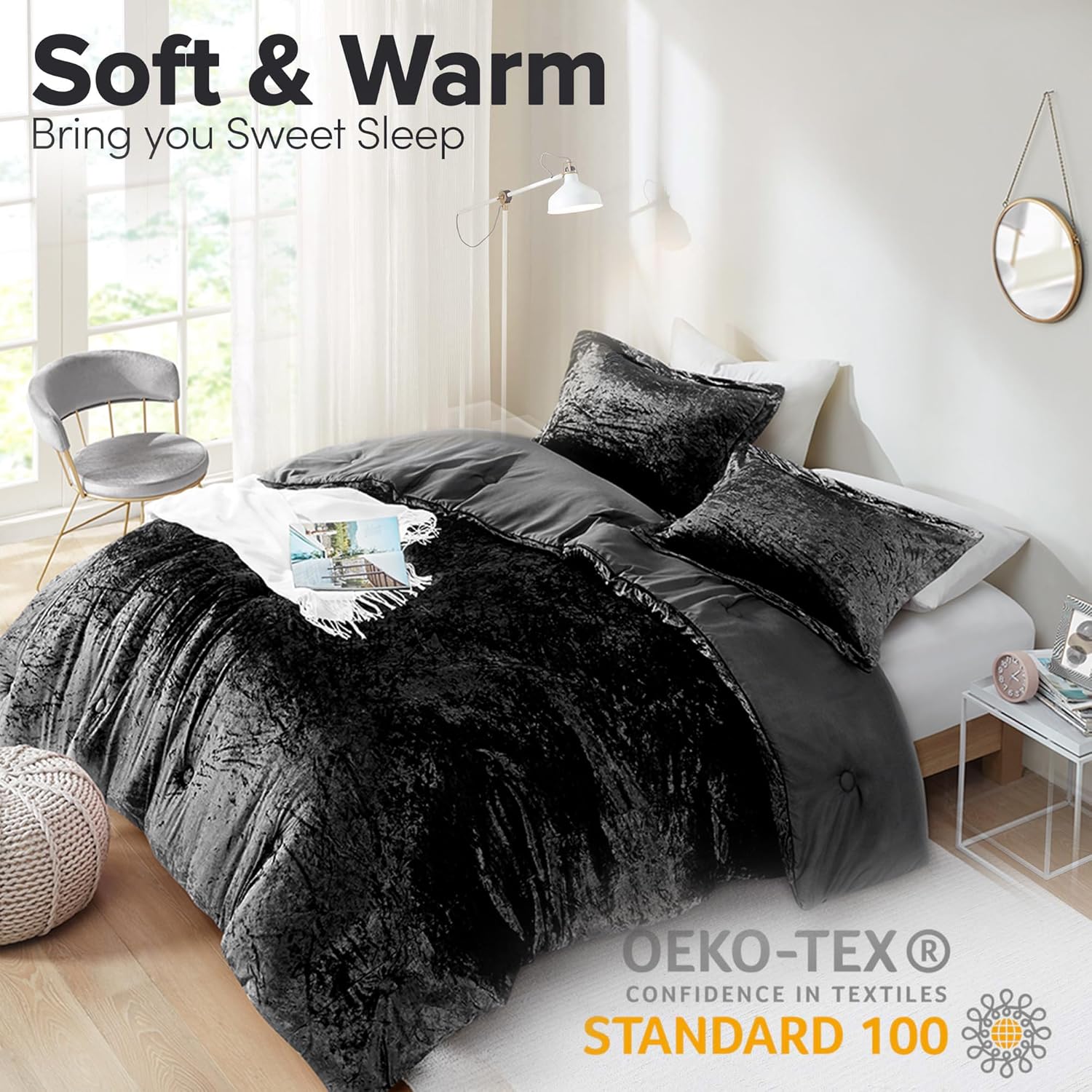 Elevate your bedroom with this ultra-soft velvet comforter set, designed for year-round comfort and timeless elegance. Featuring a plush velvet top and a cozy brushed microfiber reverse, this 3-piece set brings both style and warmth to your space.