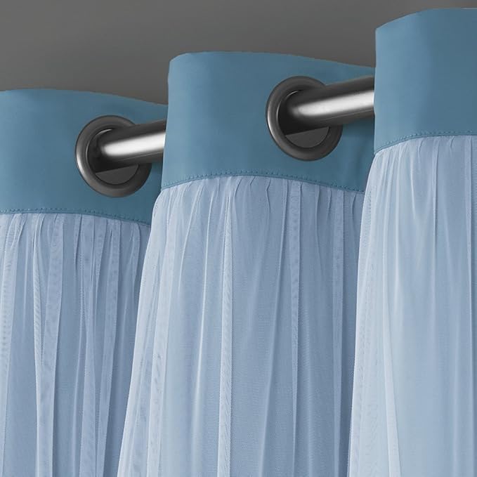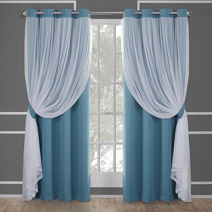 TOWN & COUNTRY LUXE Talia Double Layer Curtains – Sheer & Blackout, Energy Efficient, 2-Pack, 52"x84", Turquoise